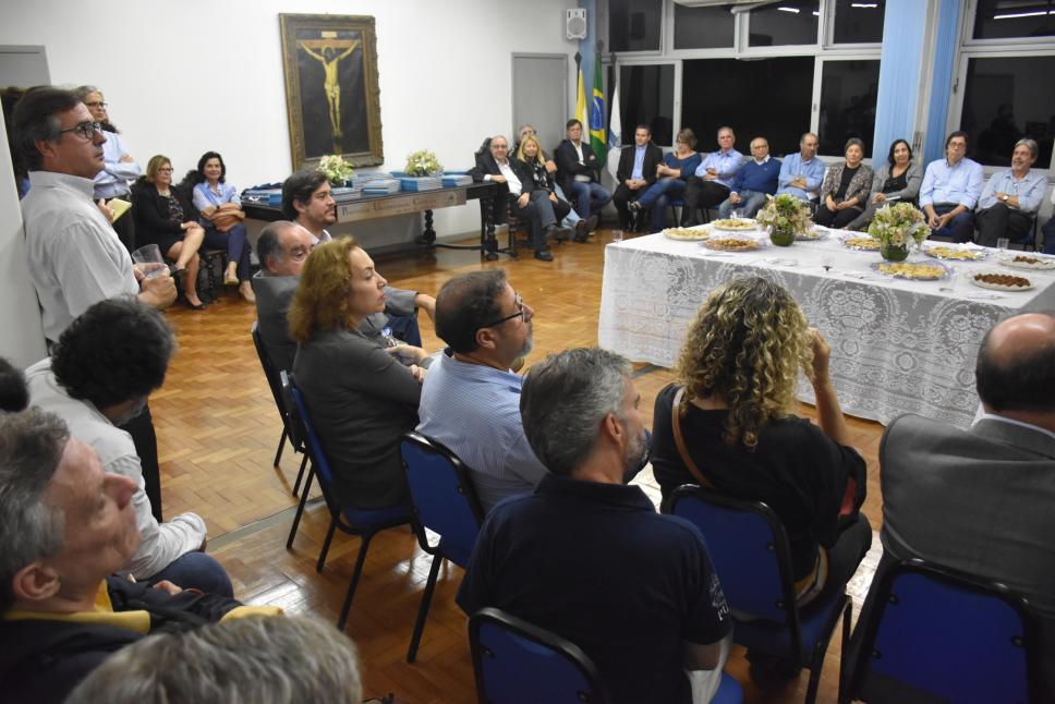 Pessoas presentes ao evento, durante a apresentação do projeto e da estrutura do livro pela Profa. Margarida de Souza Neves (Núcleo de Memória).