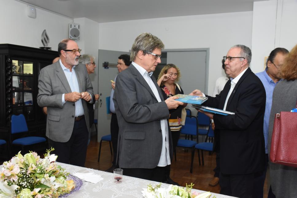 O Reitor Pe. Josafá S.J. distribui os livros aos presentes.
