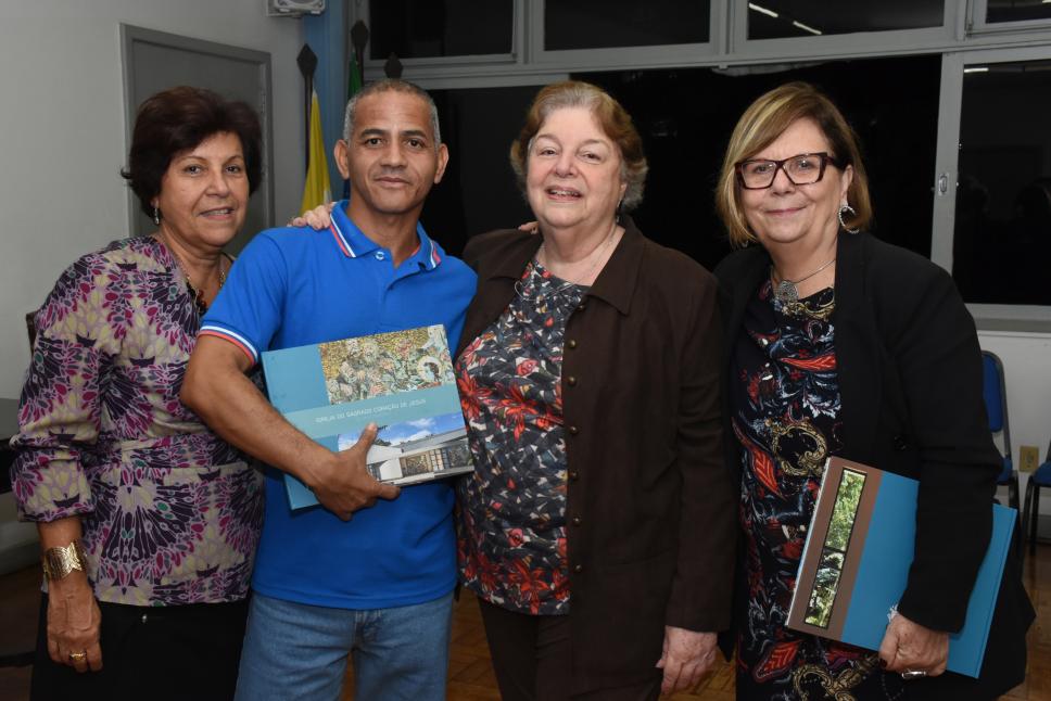 Ivone Figueiredo, secretária da Reitoria, Pedro Luiz Soares Ferreira, auxiliar da Reitoria, profa. Margarida de Souza Neves e Maria José Teixeira Soares, assessora da Vice-reitoria de Desenvolvimento.
