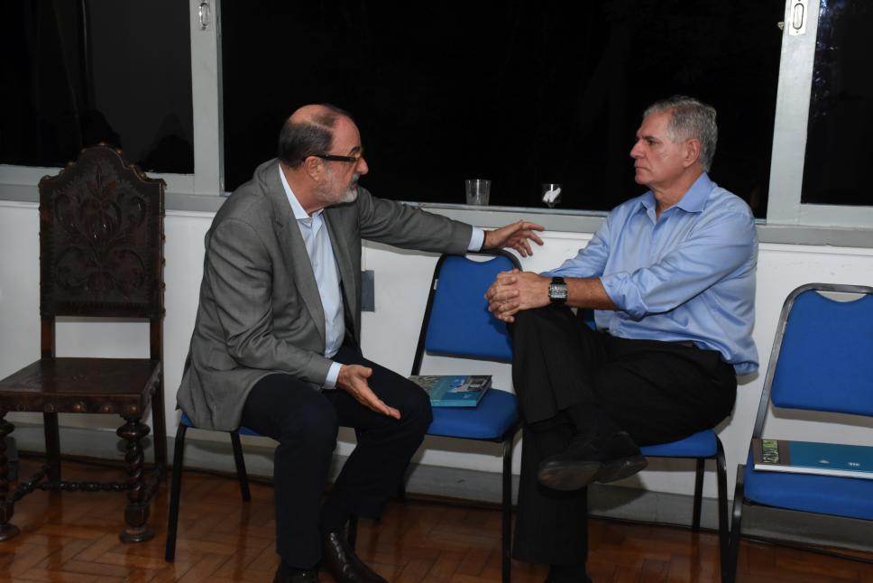 O Prof. Hilton Augusto Koch conversa com o Prof. Walmir Ferreira Coutinho.
