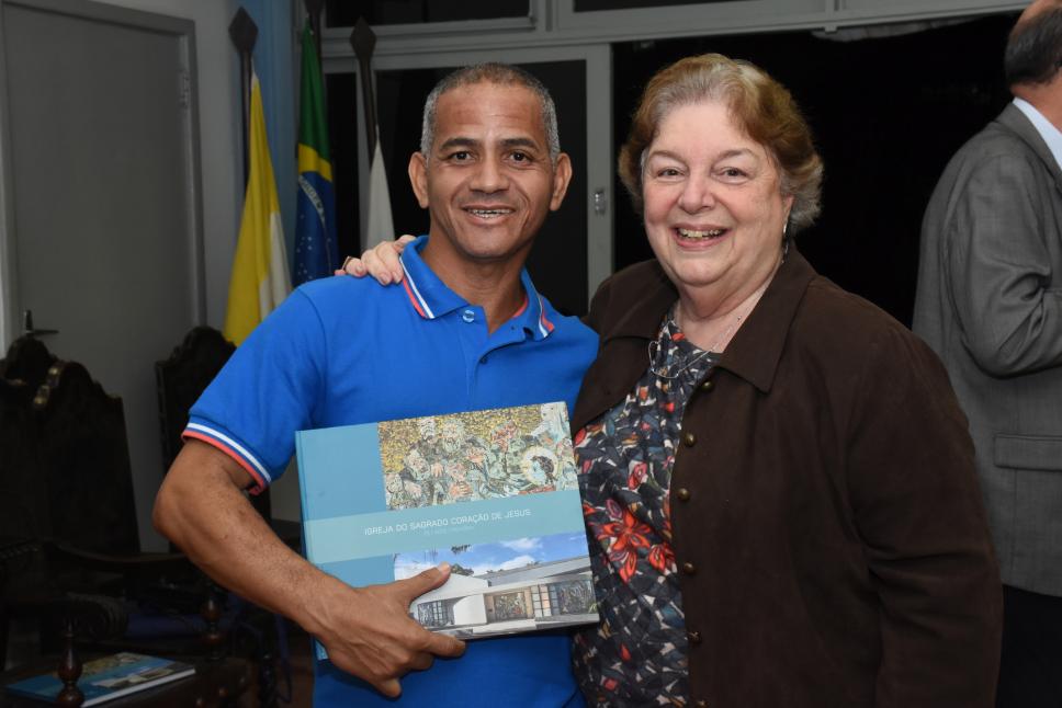 O auxiliar da Reitoria, Pedro Luiz Soares Ferreira, ao lado da profa. Margarida de Souza Neves (Núcleo de Memória).