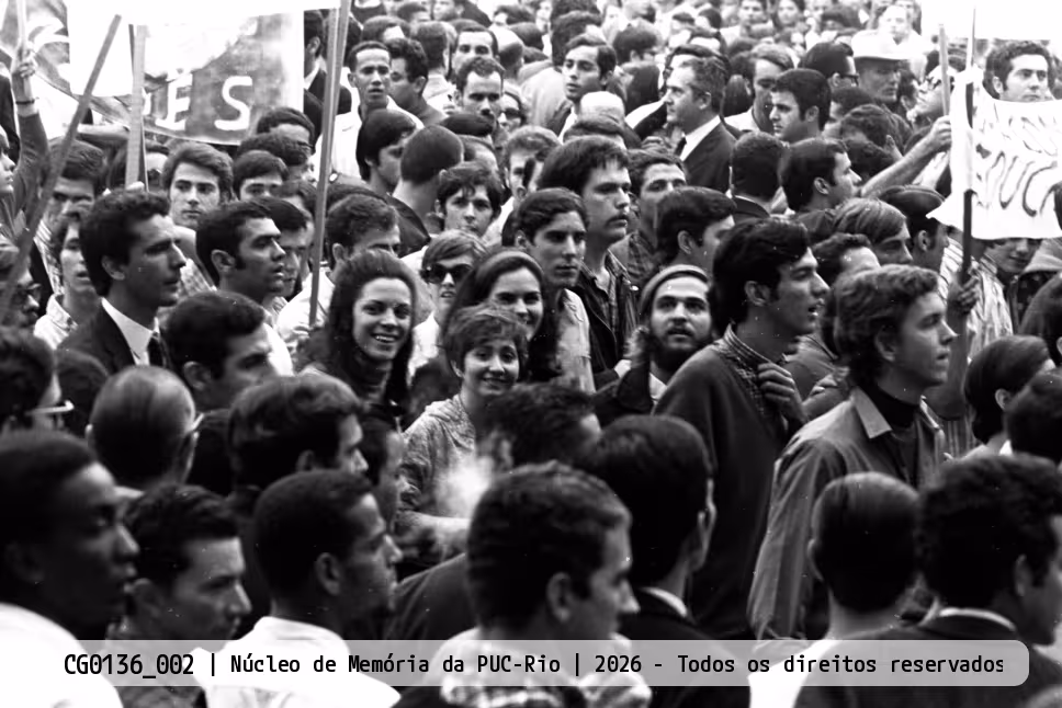 Na Passeata dos Cem Mil, na Cinelândia, Ana Waleska, à época aluna de Pedagogia, aparece sorrindo quase ao centro, um pouco à esquerda, ao lado de Maria Cecília Londres, aluna de Letras.