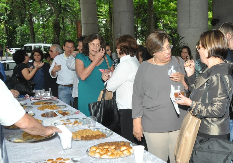 Confraternização após a Assembleia Universitária. Na foto, entre outros, a Profa. Maria Sarah da Silva Telles (CIS), Profa. Ângela Randolpho Paiva (CIS), Prof. Pe. Pedro Magalhães Ferreira S.J. (ELE), Ana Waleska, Profa. Marlene Sabino Pontes (CETUC) e Maria José Teixeira Soares (VRD).