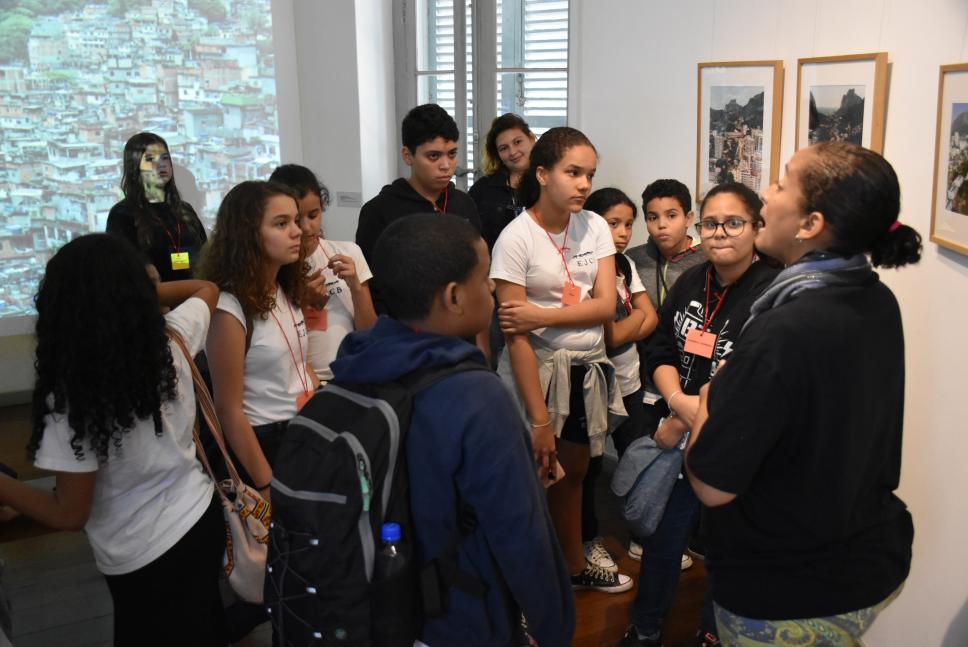 Visita de alunos da Escola Jockey Club Brasileiro, localizada na Gávea. Projeção de imagens na sala redonda do segundo andar.