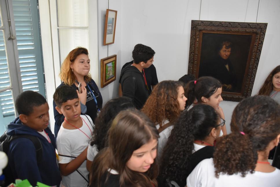 Visita de alunos da Escola Jockey Club Brasileiro, localizada na Gávea. Uma das salas da administração, com pinturas do Solar e um retrato de Grandjean. 13/09/2018.