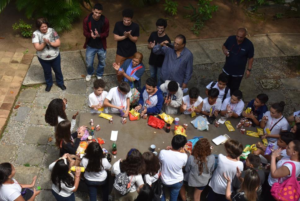 Visita de alunos da Escola Jockey Club Brasileiro, localizada na Gávea. Lanche após a visita. 14/09/2018.