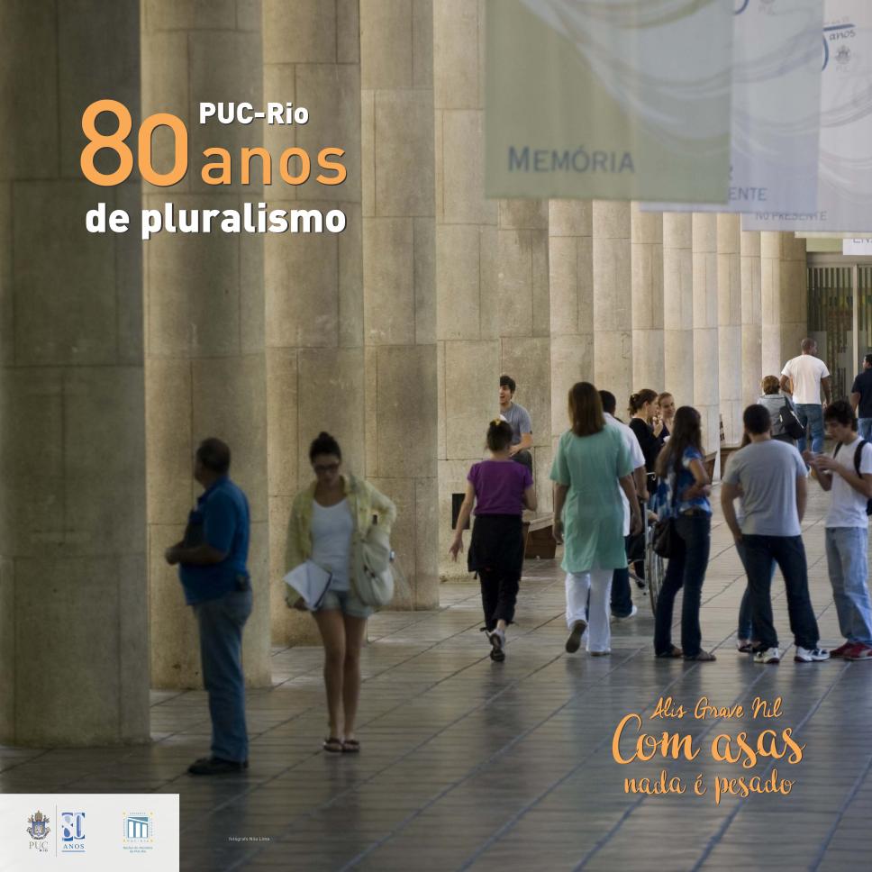 Painel instalado no Edifício da Amizade, Ala Frings, com a frase 80 anos de Pluralismo.