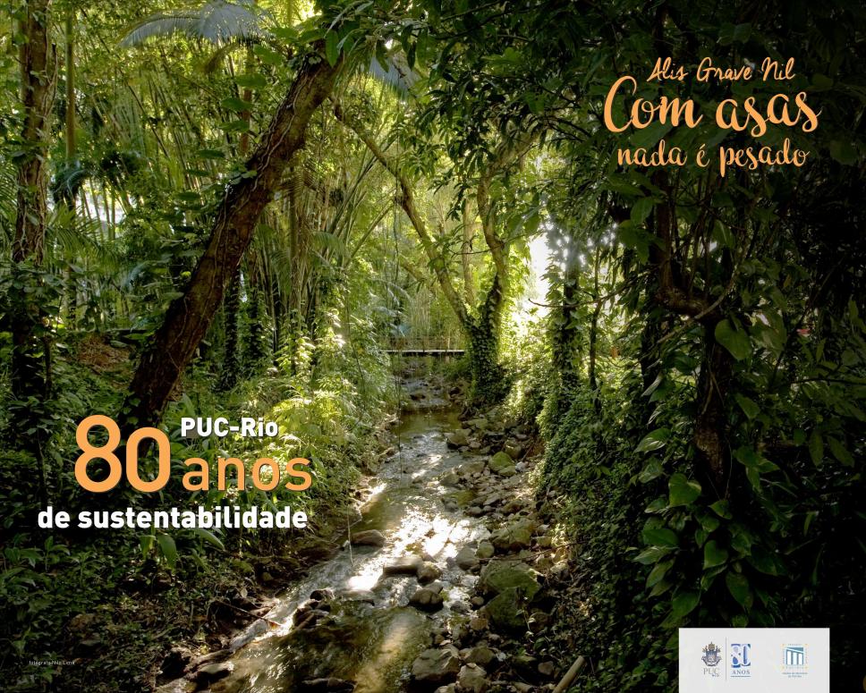 Painel instalado na parede externa do Edifício Cardeal Leme - Bloco A, com o tema 80 anos de Sustentabilidade.