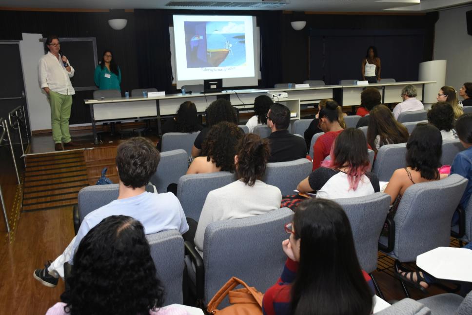 Apresentação do diretor do Departamento, Prof. Ralph Bannell. A palestra seria sobre "Educação nas prisões".