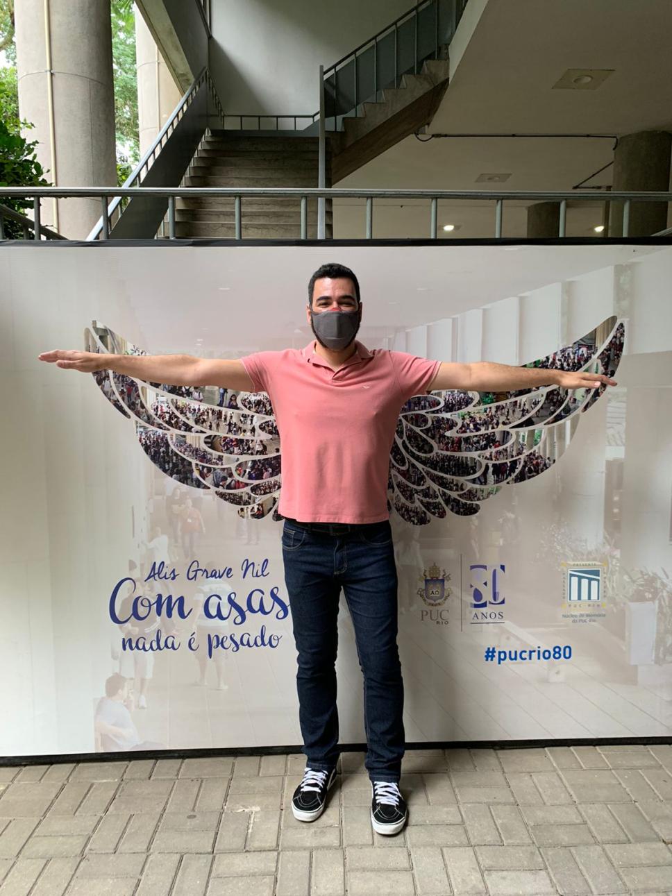 “1 ano e 7 meses depois… de volta ao trabalho presencial.” O pesquisador do Núcleo de Memória da PUC-RIo, Eduardo Gonçalves, em seu primeiro dia de volta ao campus depois do início da pandemia.
