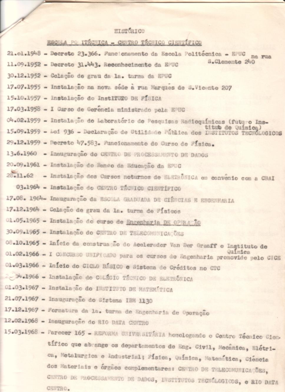 Histórico da Escola Politécnica - Centro Técnico Científico. De 21/01/1948 a 15/03/1968. Efemérides pontuais.