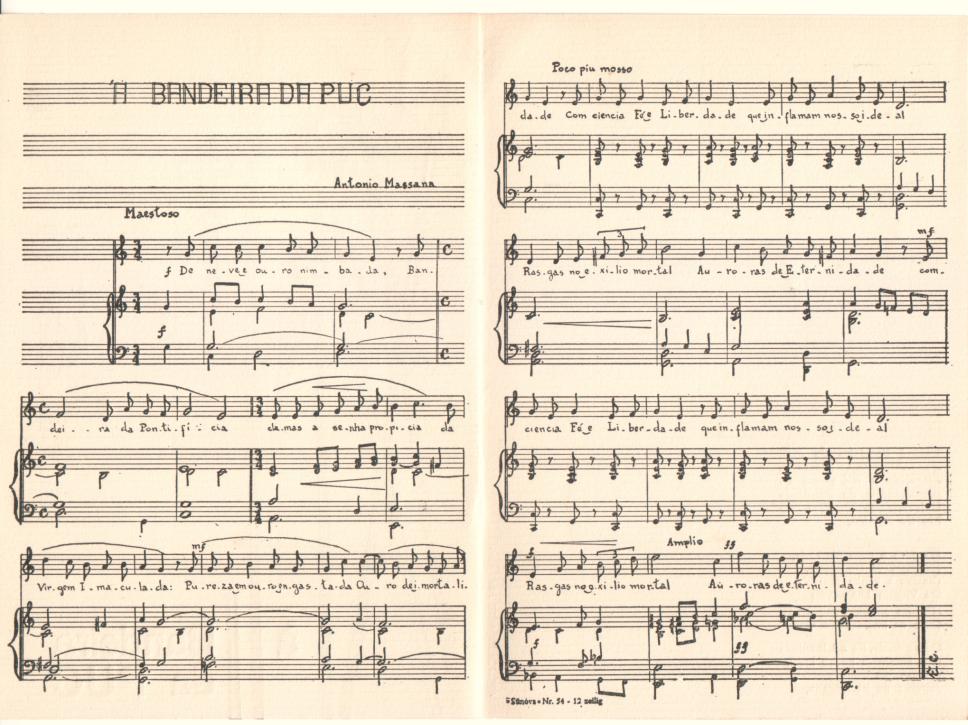 Letra e partitura do Hino à Bandeira da PUC-Rio. Partitura.