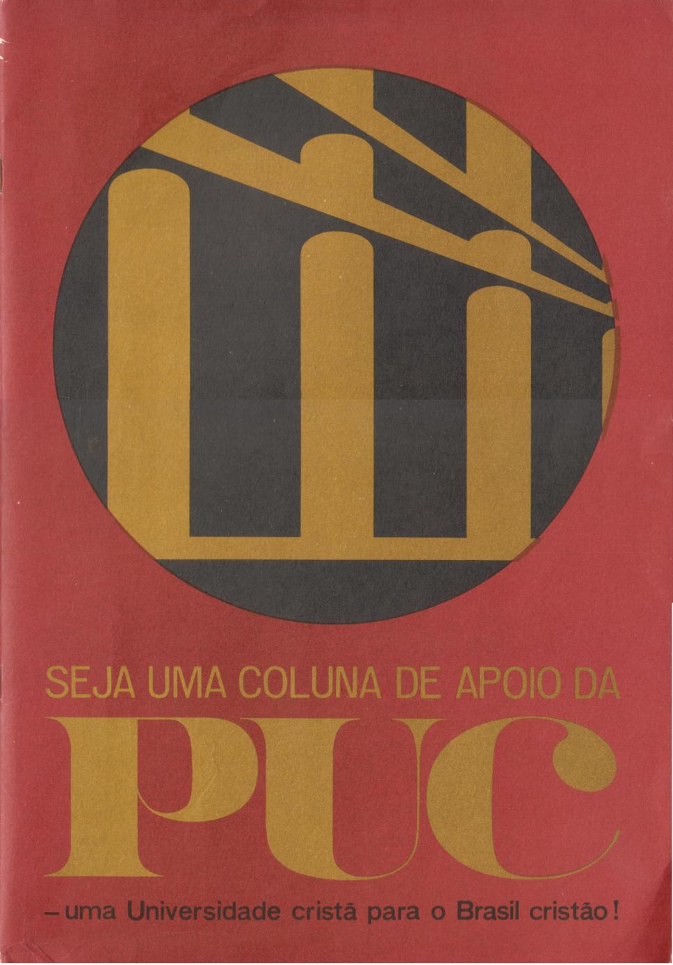 Capa do folder de divulgação da Campanha Financeira "Seja uma coluna de apoio da PUC - Uma Universidade cristã para o Brasil cristão".
