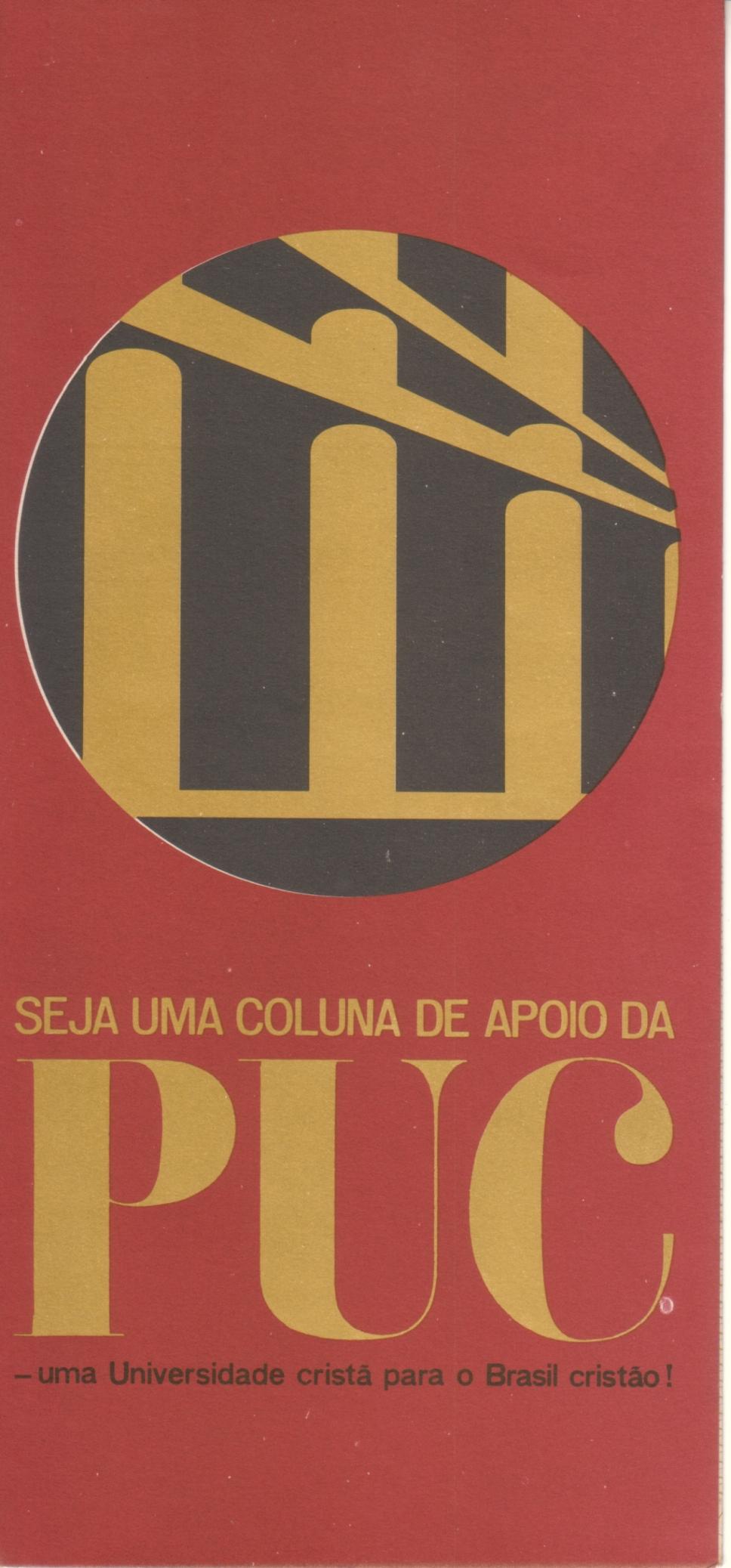 Capa do folheto da campanha "Seja uma coluna de apoio da PUC - uma universidade cristã para o Brasil cristão!".