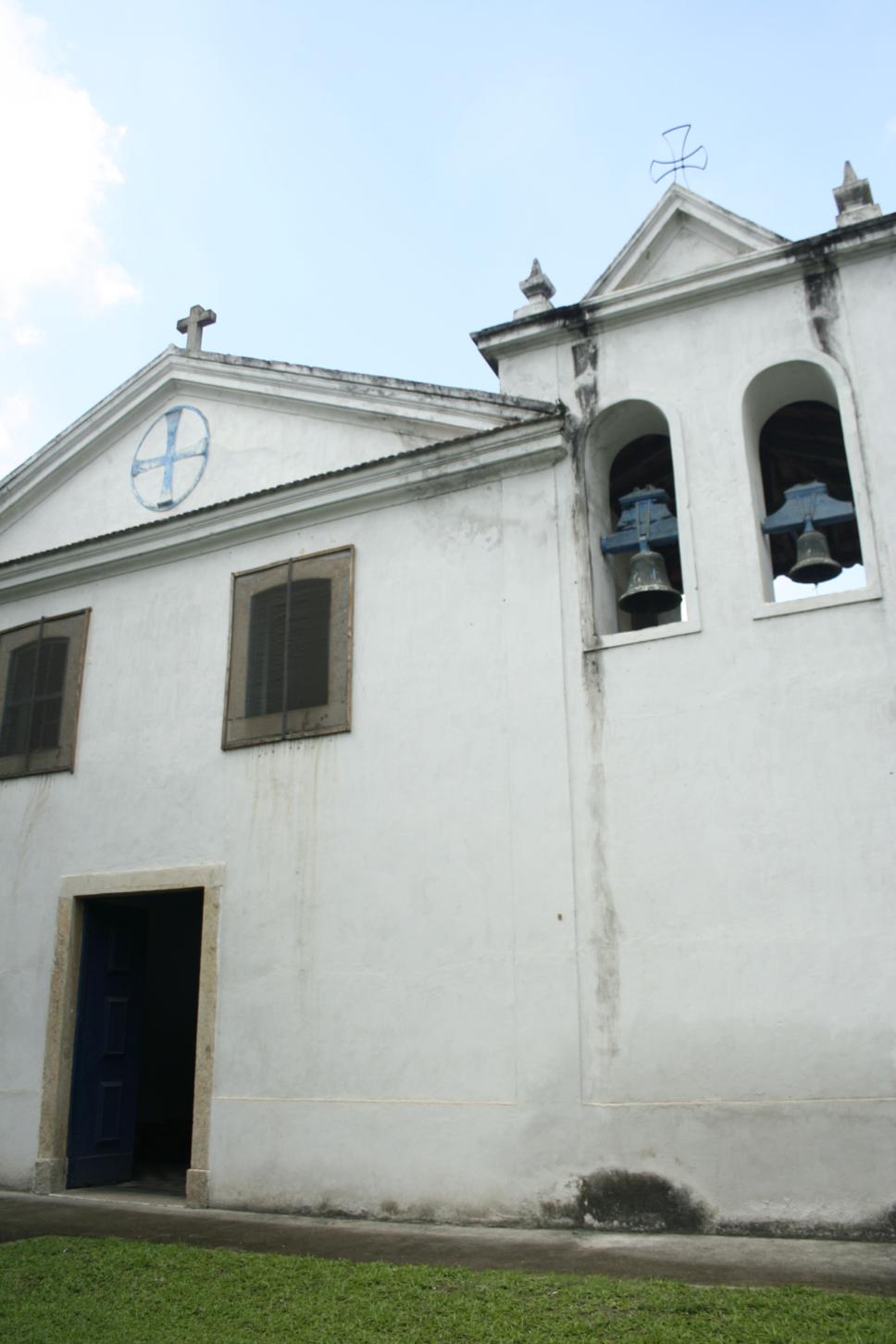 Estrutura existente no Pólo Avançado de Caxias, em preparação para o início dos cursos de extensão que ali seriam oferecidos. Fachada da igreja com torre sineira, sinos à vista.