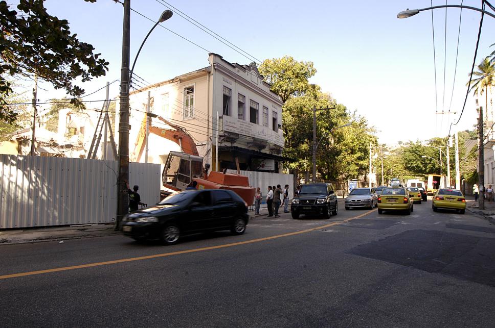 Vista a partir da rua Marquês de São Vicente de obra ao lado do prédio posteriormente ocupado pelo Departamento de Serviço Social.
