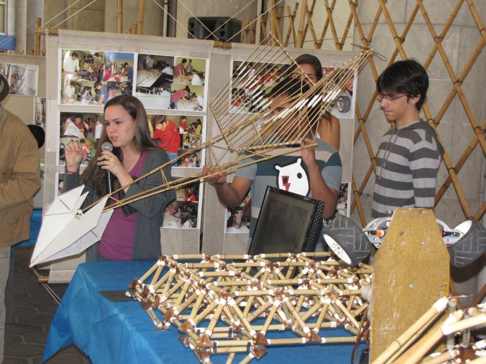 Alunos do prof. Joao Krause exibem modelos em bambu.
