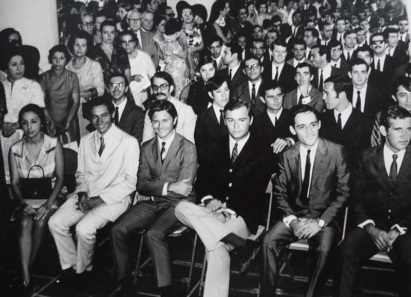 Missa de formatura da turma de Engenharia Elétrica. Alunos formandos sentados e convidados em pé. Formandos não usavam beca.