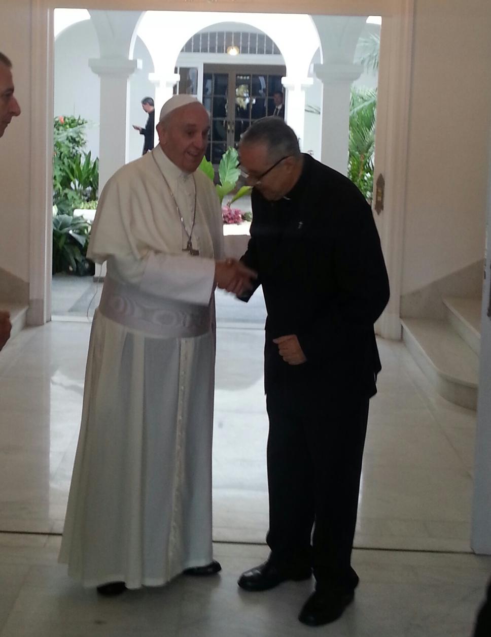 O Papa Francisco cumprimenta o Reitor pe. Josafá S.J..