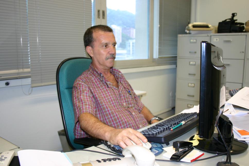 Funcionário José Pain (CCS) em seu ambiente de trabalho.