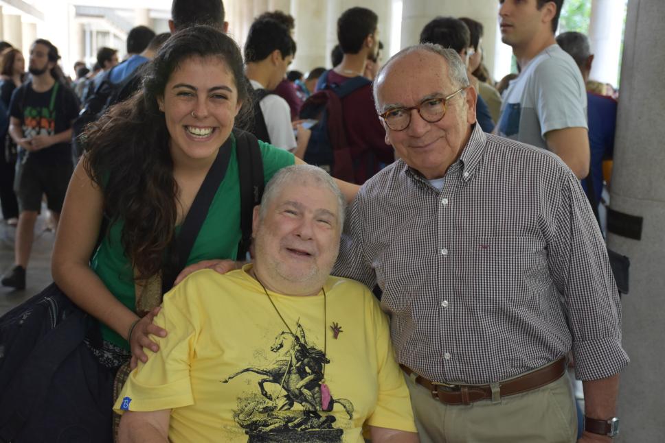 Encontro casual do prof. Augusto Sampaio (VRC) com o prof. Silvio Tendler (COM) no hall dos elevadores da Ala Kennedy.