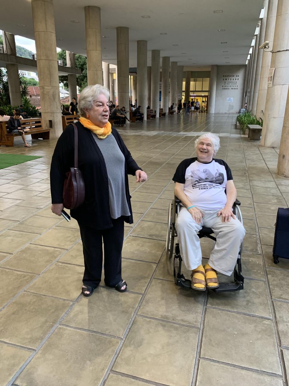 Encontro casual da profa. Margarida de Souza Neves (Núcleo) com o prof. Silvio Tendler (COM), no último dia de trabalho formal do prof. Tendler na Universidade.