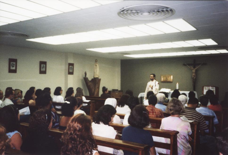 Missa de São José, Missa dos Carpinteiros. No fundo do altar, o cristo crucificado que posteriormente foi colocado na parede lateral da Igreja do Sagrado Coração de Jesus.