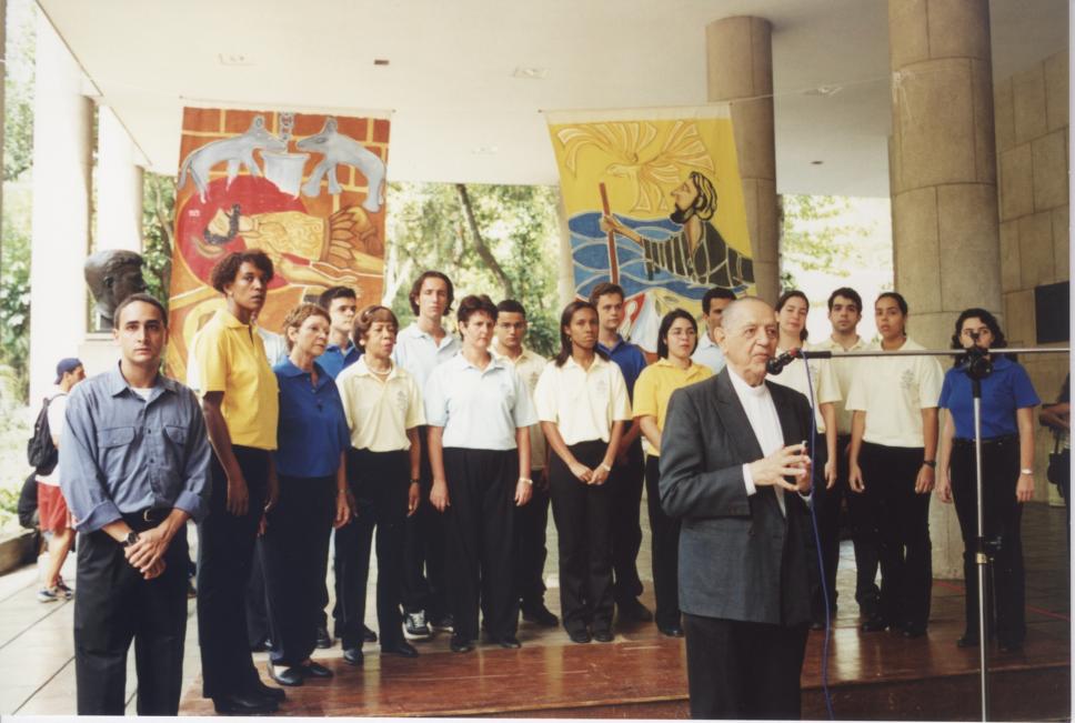 Abertura da Semana Inaciana (24 a 26/10/2000) pelo pe. Laércio Dias de Moura (JUR) com o Coral da PUC-Rio. Na programação, palestras e eventos culturais.