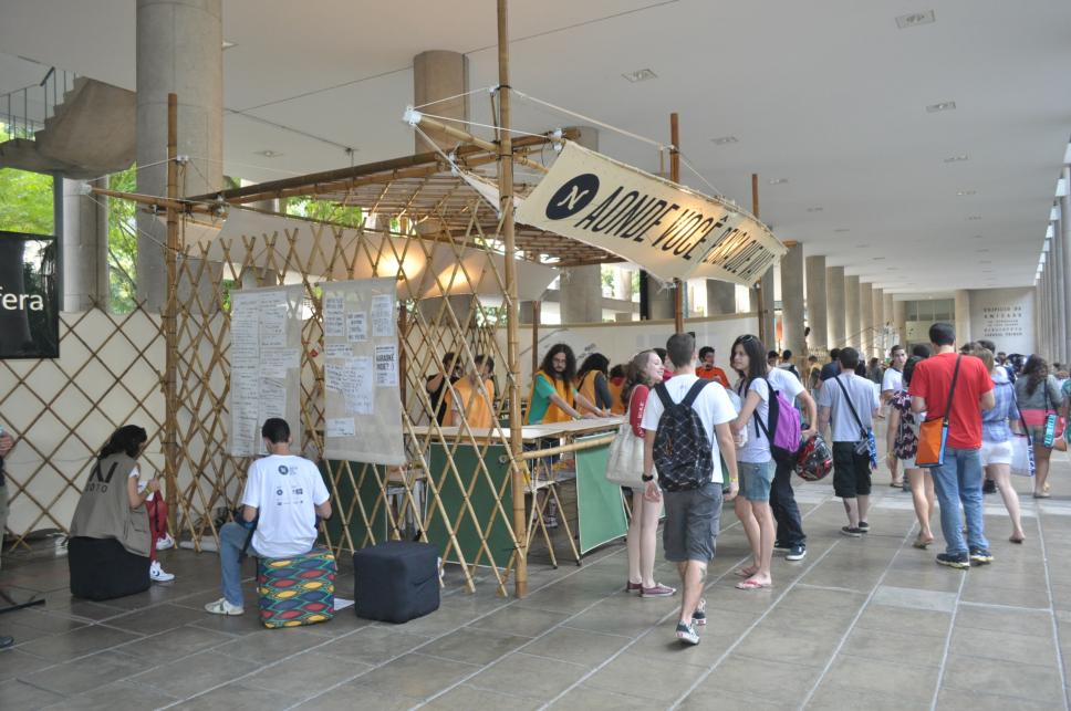 Decoração dos pilotis e estandes do evento NDesign.