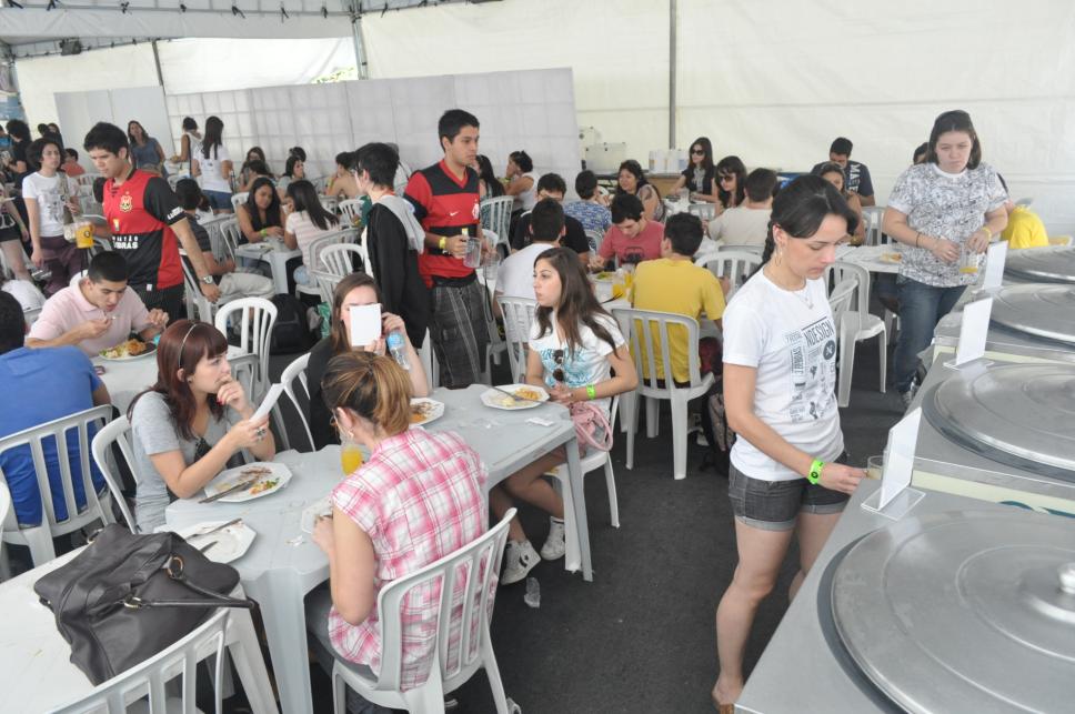 Refeitório montado em tendas para o evento NDesign.