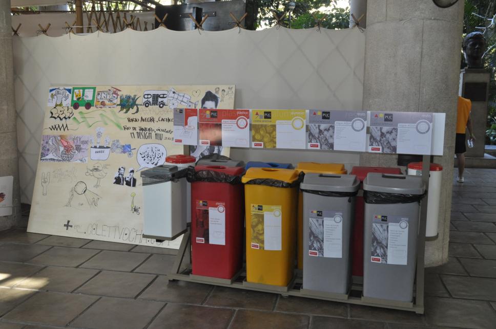 Decoração dos pilotis e estandes do evento NDesign. Painel do Coletivo Chá.