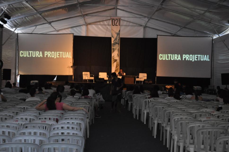 Palestras do NDesign em tenda montada para o evento - Auditório Felipe Vellozo.