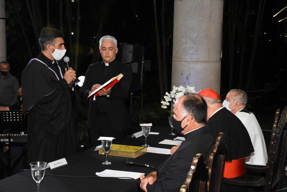 Leitura do compromisso do pe. Anderson Antonio Pedroso S.J. com seu novo cargo.