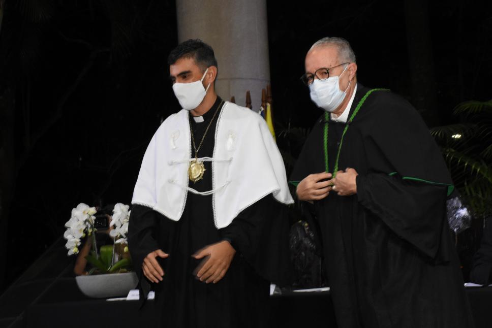 O pe. Anderson Antonio Pedroso S.J. e o pe. Josafá Carlos de Siqueira S.J. após a passagem simbólica do cargo de Reitor.