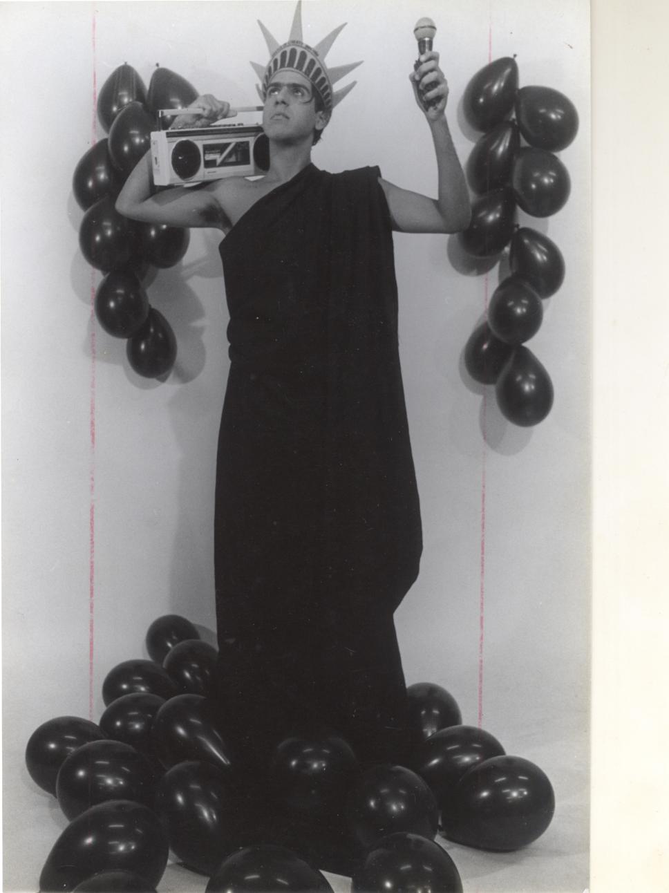 O aluno Fernando Solano, da disciplina de Direção de Arte do curso de Comunicação Social, posa como uma Estátua da Liberdade. A foto faz parte de um exercício final da matéria lecionada pelo professor Alfredo Grieco.