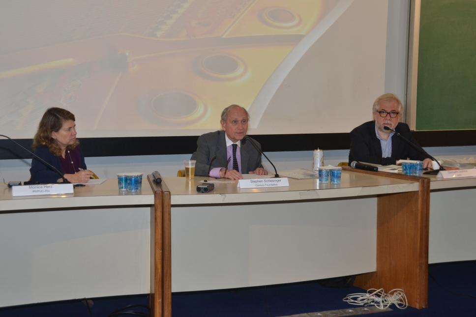 Da esq. para dir.: profa. Monica Herz (IRI), Stephen Schlesinger (The Century Foundation), Giancarlo Summa (UNIC Rio)