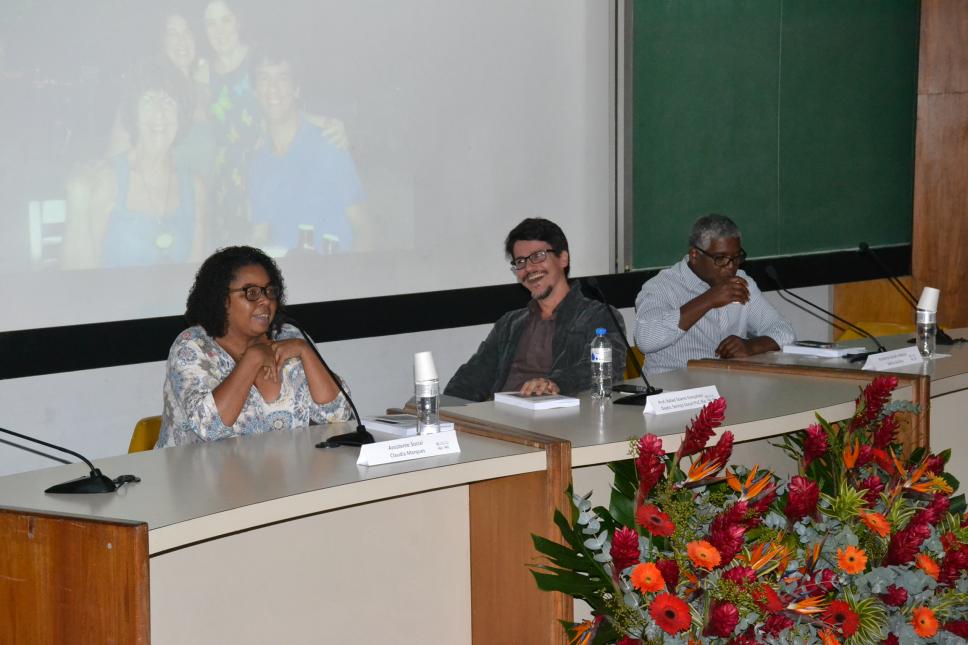 Da esq. para dir.: assistente social Claudia Marques, prof. Rafael Soares Gonçalves (SER), assistente social e Valério da Silva.