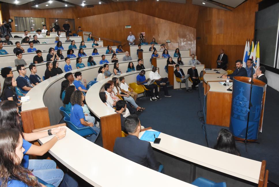 Na mesa da esq. para dir.: André Street, Prof. Pe. Anderson Antonio Pedroso S.J. (DAD, Reitor) e o Ministro e Presidente do STF Luís Roberto Barroso.