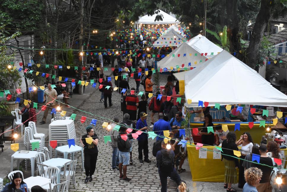 De boné 'PUC' e camisa azul - Antonio Carlos Anchieta Romão (PREF); Marcos (eletricista PREF) de camisa azul apoiado na barraca.