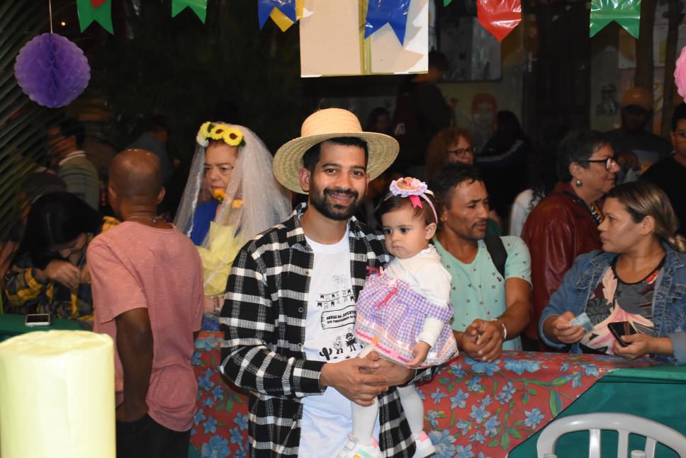 Funcionários e professores no arraiá realizado na Vila dos Diretórios.