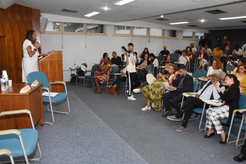 A professora Aza Njeri e plateia do evento.