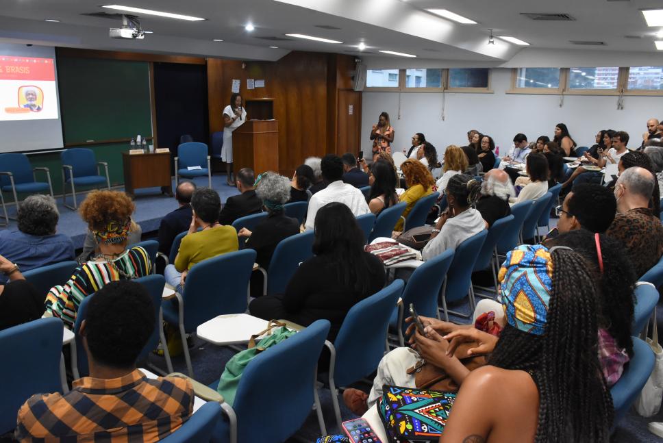 A professora Aza Njeri apresenta o escritor Wole Soyinka.