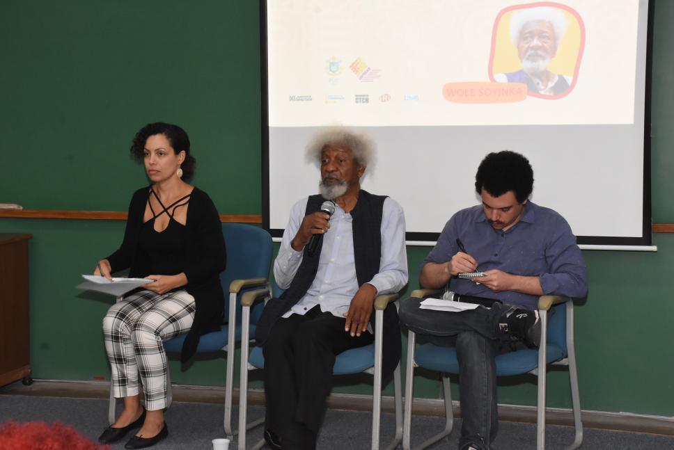 O escritor nigeriano Wole Soyinka em sua palestra que fez parte da comemoração do Dia Nacional da África.