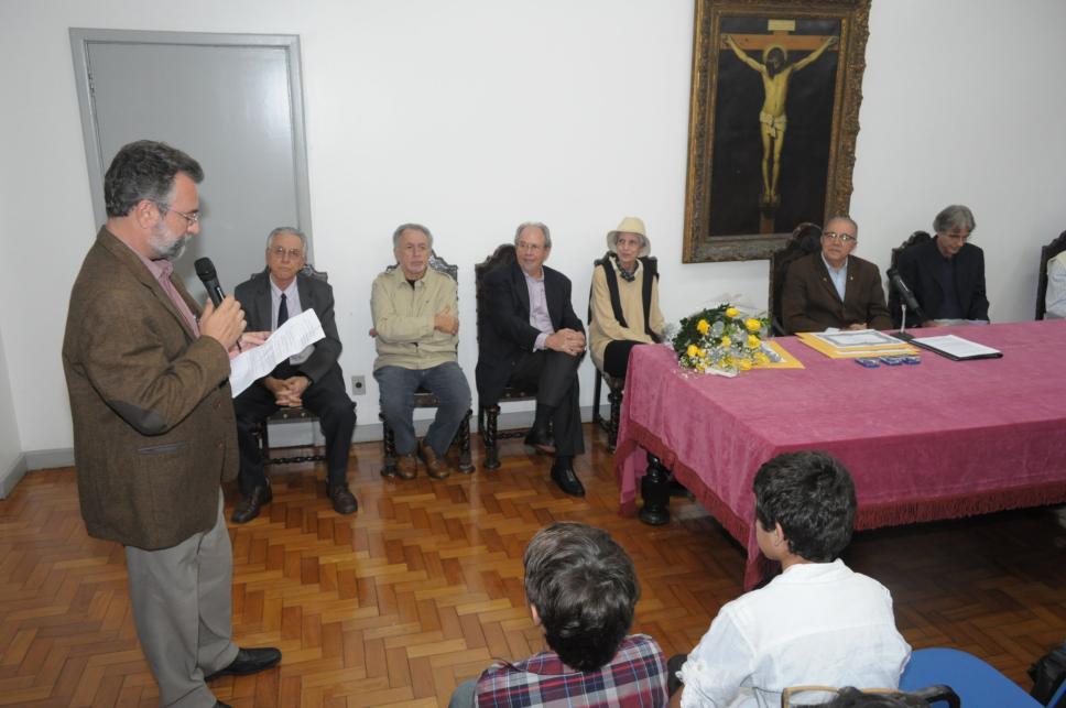Da esq. para dir.: prof. Paulo Fernando Carneiro de Andrade (TEO, decano do CTCH), prof. José Carlos D'Abreu (DEMa), prof. Luiz Costa Lima (HIS), prof. Oswaldo Chateaubriand Filho (FIL), profa. Margarida Maria de Paula Basílio (LET), prof. pe. Josafá Carlos de Siqueira S.J. (GEO, Reitor), prof. José Ricardo Bergmann (CETUC, Vice-Reitor para Assuntos Acadêmicos)
