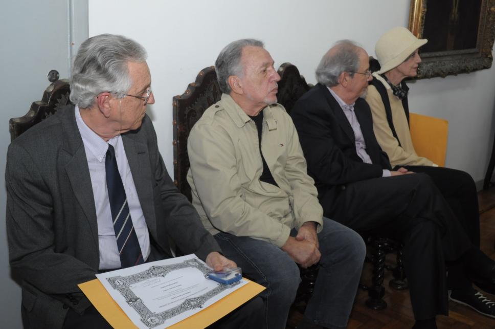 Da esq. para dir.: prof. José Carlos D'Abreu (DEMa), prof. Luiz Costa Lima (HIS),prof. Oswaldo Chateaubriand Filho (FIL), profa. Margarida Maria de Paula Basílio (LET)