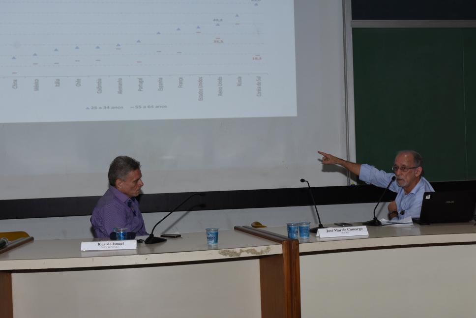 Palestra sobre desigualdade social no Brasil com os professores José Márcio Camargo e Ricardo Ismael.