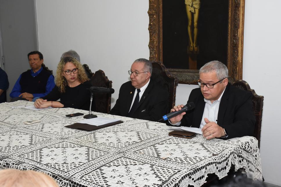 Da esq. para dir.: Prof. Luiz Scavarda, Prof. Marta Regina, Reitor Prof. Pe. Josafá S.J. e o prof. Paulo Esteves.