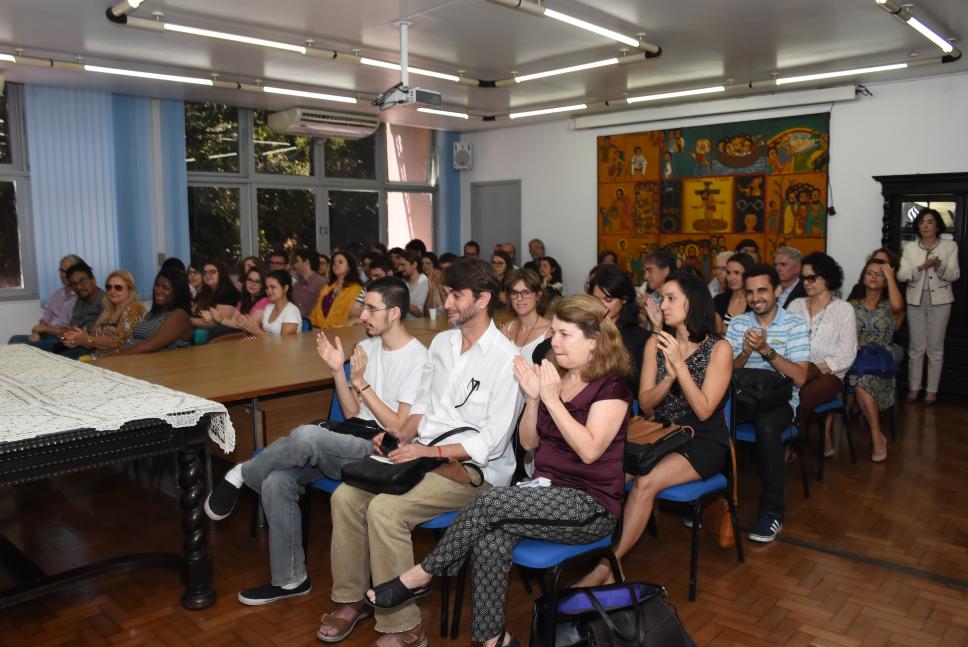 Plateia aplaude a posse da nova diretora do IRI.
