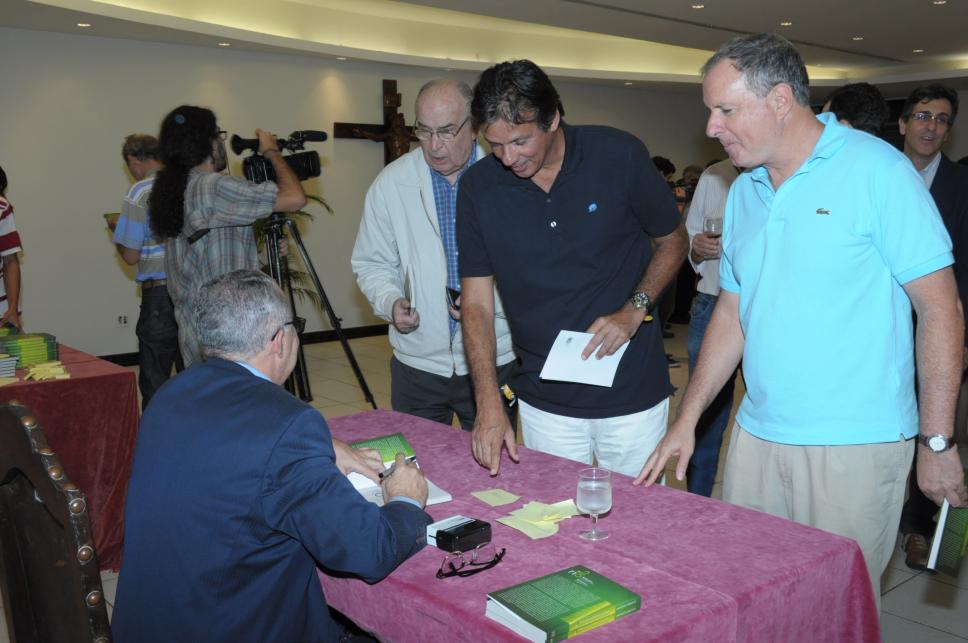 Convidados em volta da mesa de autógrafos do Reitor Pe. Josafá S.J.