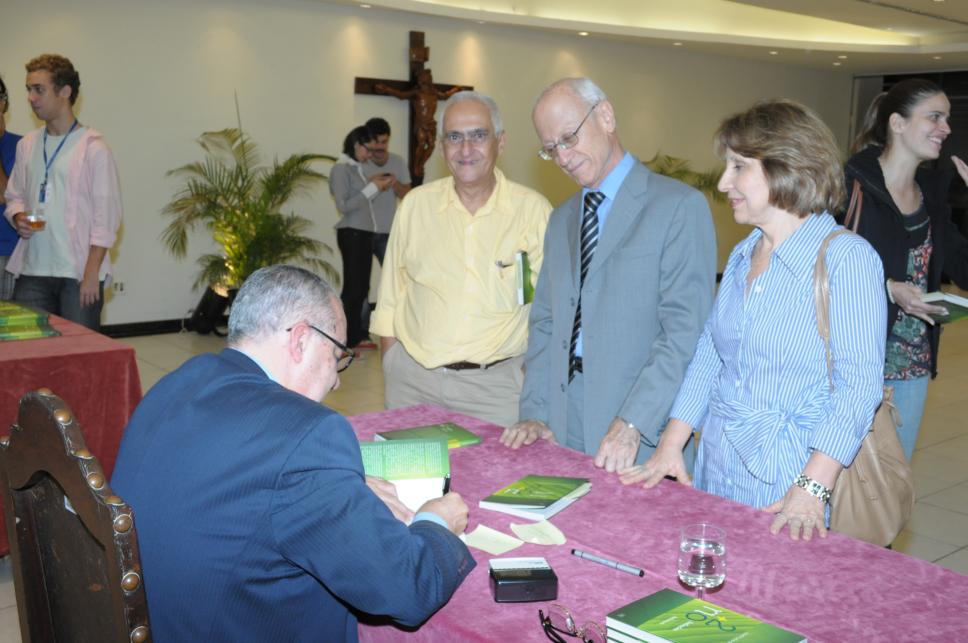 Convidados em volta da mesa de autógrafos do Reitor Pe. Josafá S.J.